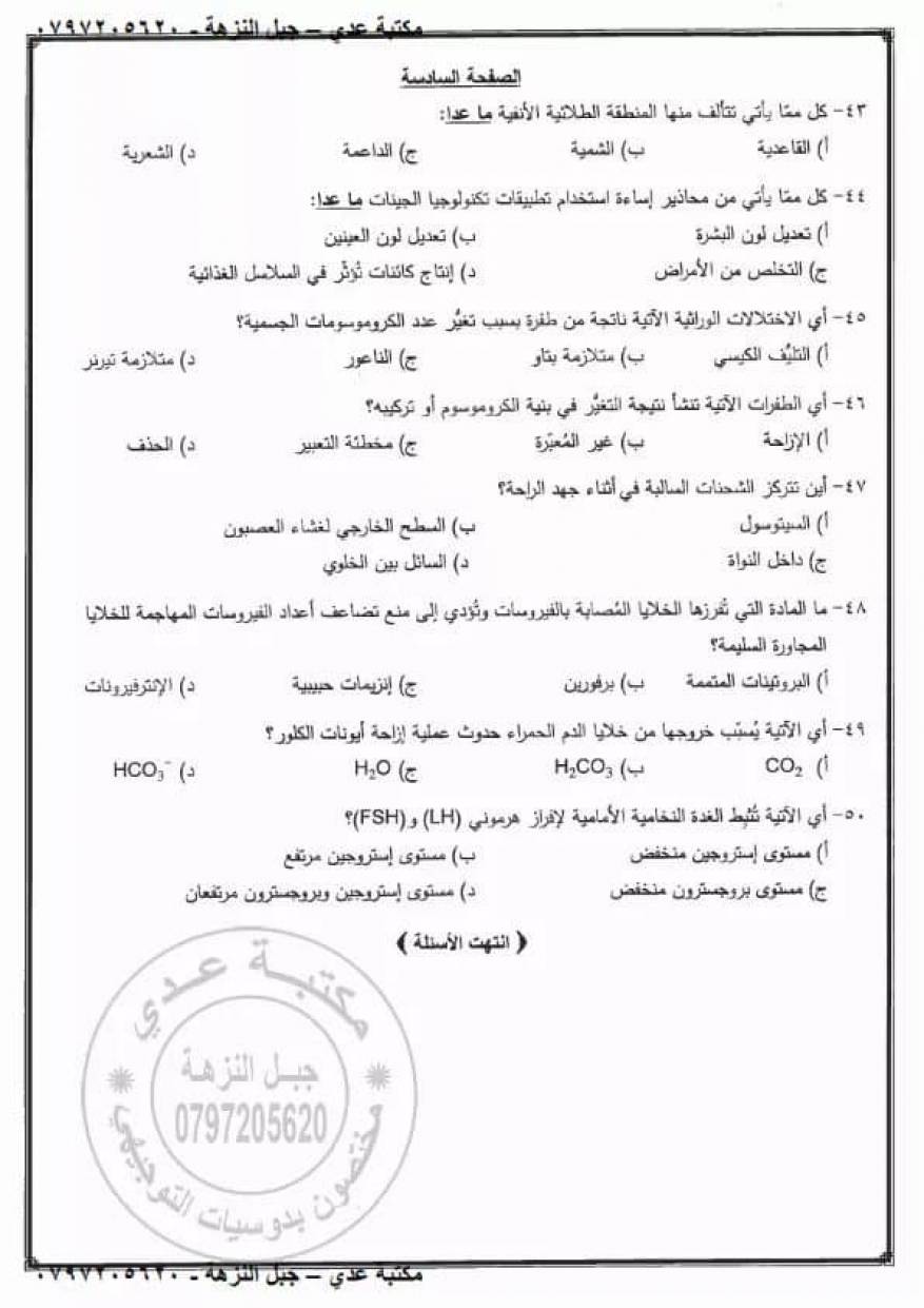 #اجابات امتحان الاحياء العلمي | رقم المبحث 126.